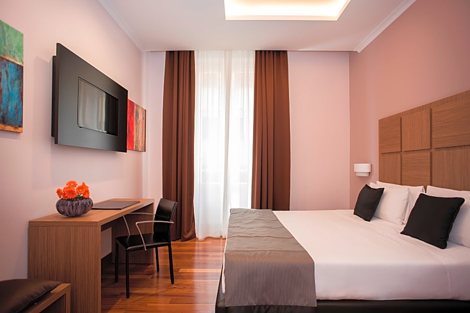 Modern and spacious room with air conditioning and a TV with satellite and pay-per-view channels.